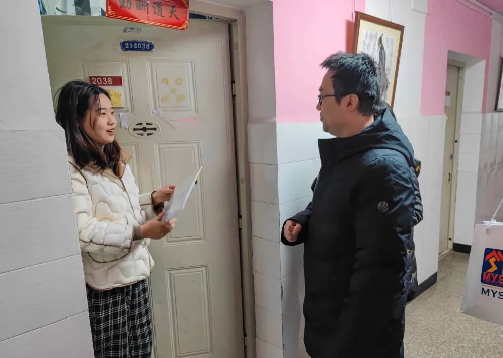 上午11时,老师们带着充满期盼的笑容,轻声叩响了每一位考研同学所在寝室的门。同学们一打开门,便收到了学院为考研同学准备好的暖心加油礼包,惊喜和感动溢于言表,连忙向老师们一一致谢,老师们也和同学们亲切交谈,询问复习情况,希望同学们不要紧张、放松心态、以最好的状态迎接考试。