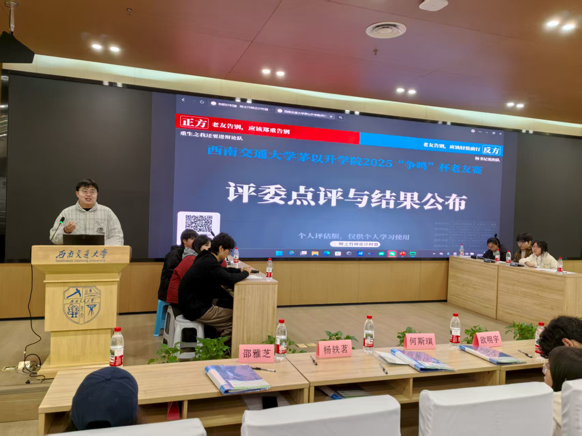 “争鸣杯”辩论(老友赛)决赛圆满落幕。赛事虽已收官,但思辨的精神永不落幕。这场围绕“告别”展开的辩论,不仅充分展现了茅院学子思辨求真、锐意进取的卓越风采,更在每个人心中播下了理性思考与深情生活的种子。它提醒着我们,人生旅途遍布交叉路口,如何从容面对离别、妥善珍藏过往、勇敢奔赴前程,本身就是一门需要终生修习的学问。而“争鸣杯”作为孕育思想、锤炼能力的重要舞台,必将持续见证一代代茅院人在思辨中成长、在碰撞中闪耀,带着这份理性与热爱,走向更加辽阔的未来。