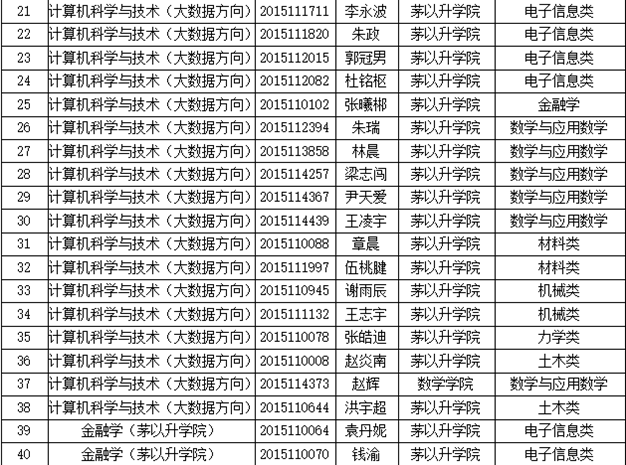 1)计算机科学与技术(大数据方向)辅修专业(录取人数33人)