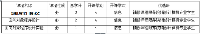 辅修专业的培养方案选课,因选课人数和开班情况不同,现将各专业2016-2017学年第2学期应选课程公布如下,请同学们: