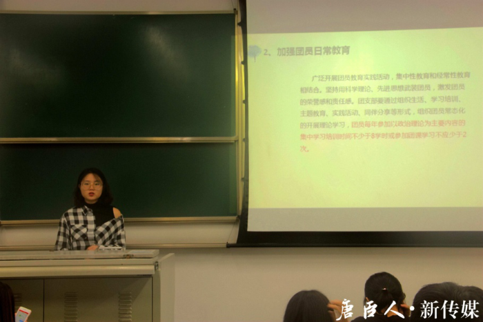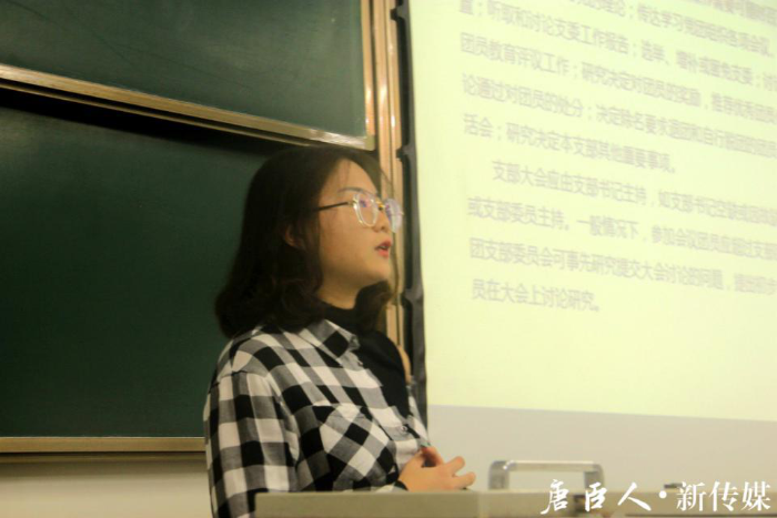 会议由班团联合会16级理事长张钰姝主讲,主要内容包括团支部工作的各项事务和注意事项,以及优秀团支部评定的相关问题。