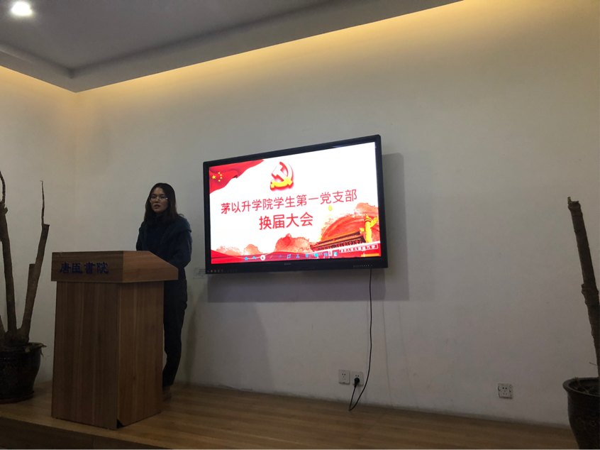 第一党支部党支部书记、党支部副书记选举;会议议程第二项,由于雪婷老师向党支部成员介绍这一学期党支部的工作计划;会议议程第三项,进行无记名选举唱票;会议议程第四项,由于雪婷老师对本次支部大会进行总结。
