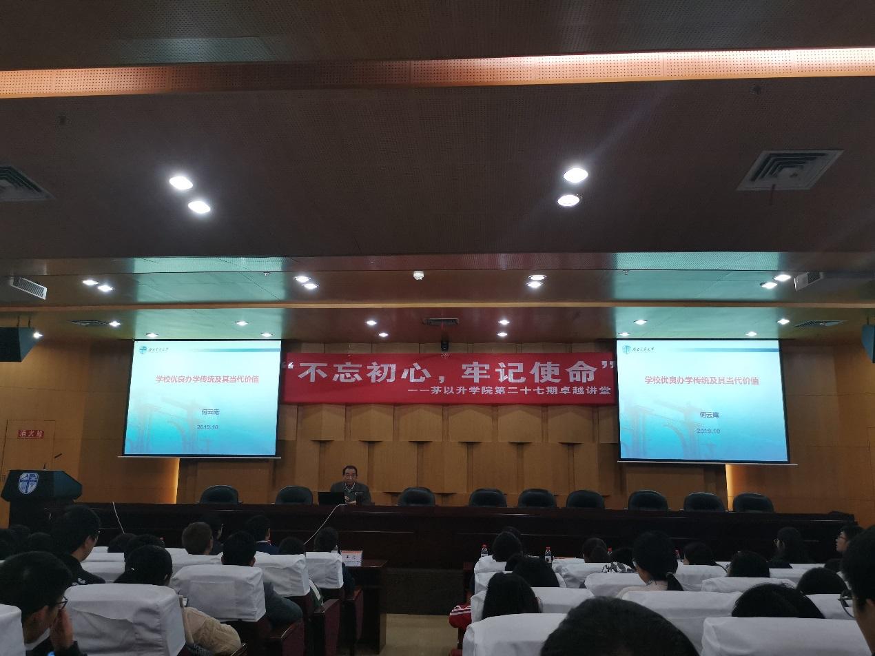 的两个优良传统是:爱国爱校和严谨治学,严格要求。何教授以两个优良传统为基础对其形成进行了深刻的剖析,结合校史作出了生动的阐述。爱国与爱校,表面看来是两个层面的理念,但在近代中国特殊的社会历史条件下却有机地融合在一起,成为一个整体。而“双严”传统,既是学校人才培养的特点与优势,也是历史上学校在各种艰难困苦的条件下能够坚持,安身立命的关键所在。无质量即无生命,历史如此,现在更须如此。