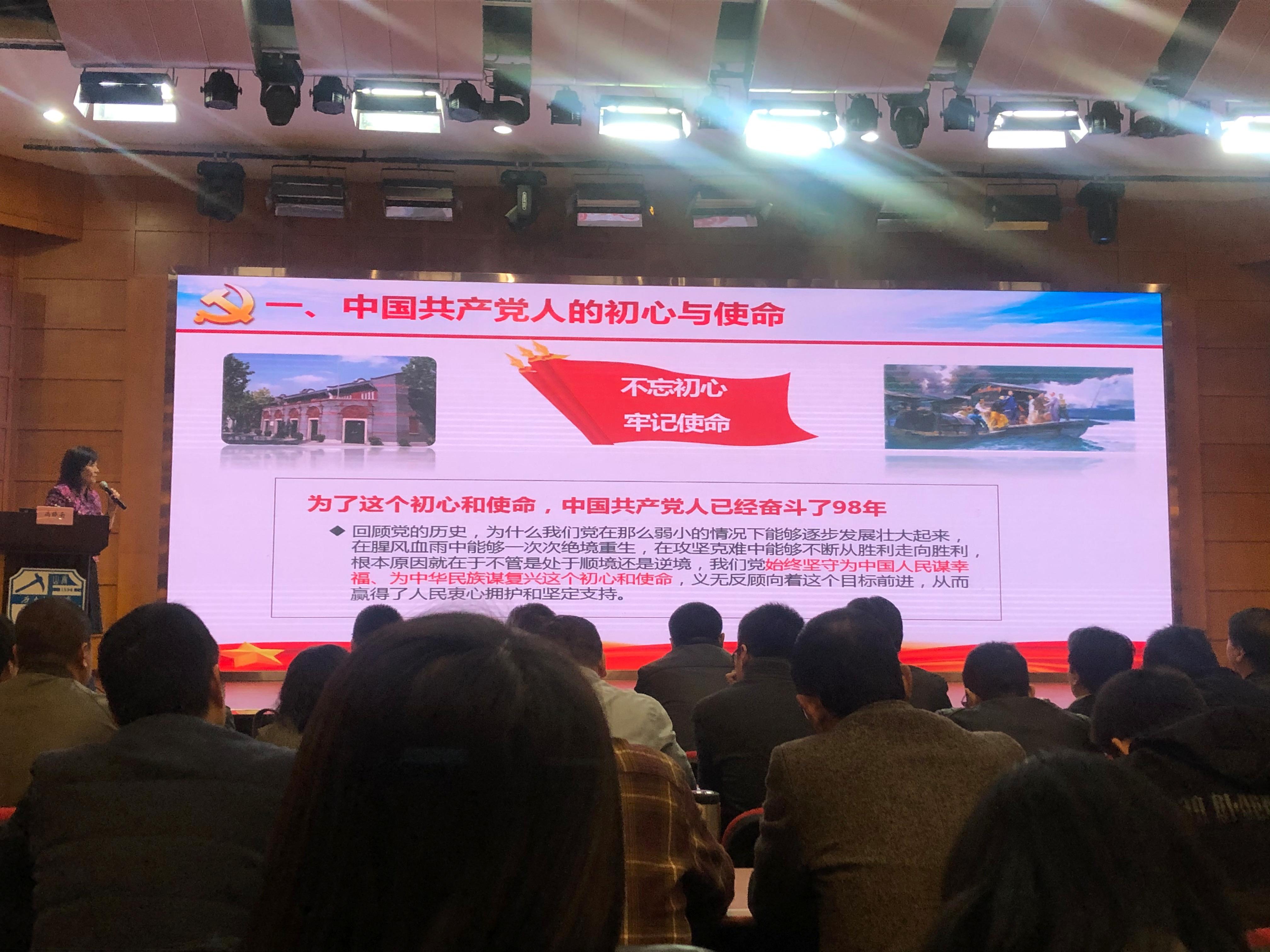 党课上,冯晓云同志从“中国共产党人的初心与使命”“做合格党员与党的干部”“《若干准则》与《纪律处分条例》”“守初心、担使命、找差距、抓落实”四个方面进行了解读。