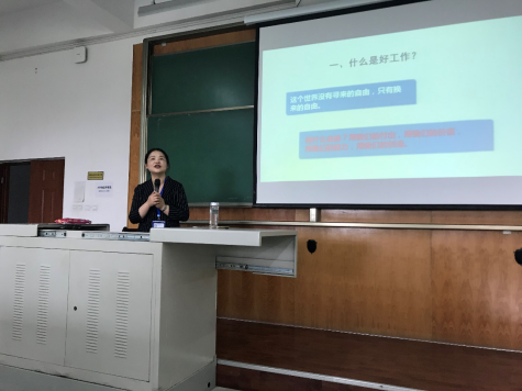 黄春蓉副处长长期负责全校毕业生的就业工作,凭借非常丰富的实践经验,不仅向同学们全面介绍了就业现状的实际情况,也对国家政策大政方针向同学们进行宣讲剖析。最后在同学们的热烈鼓掌声中,本次指导工作会议圆满结束。