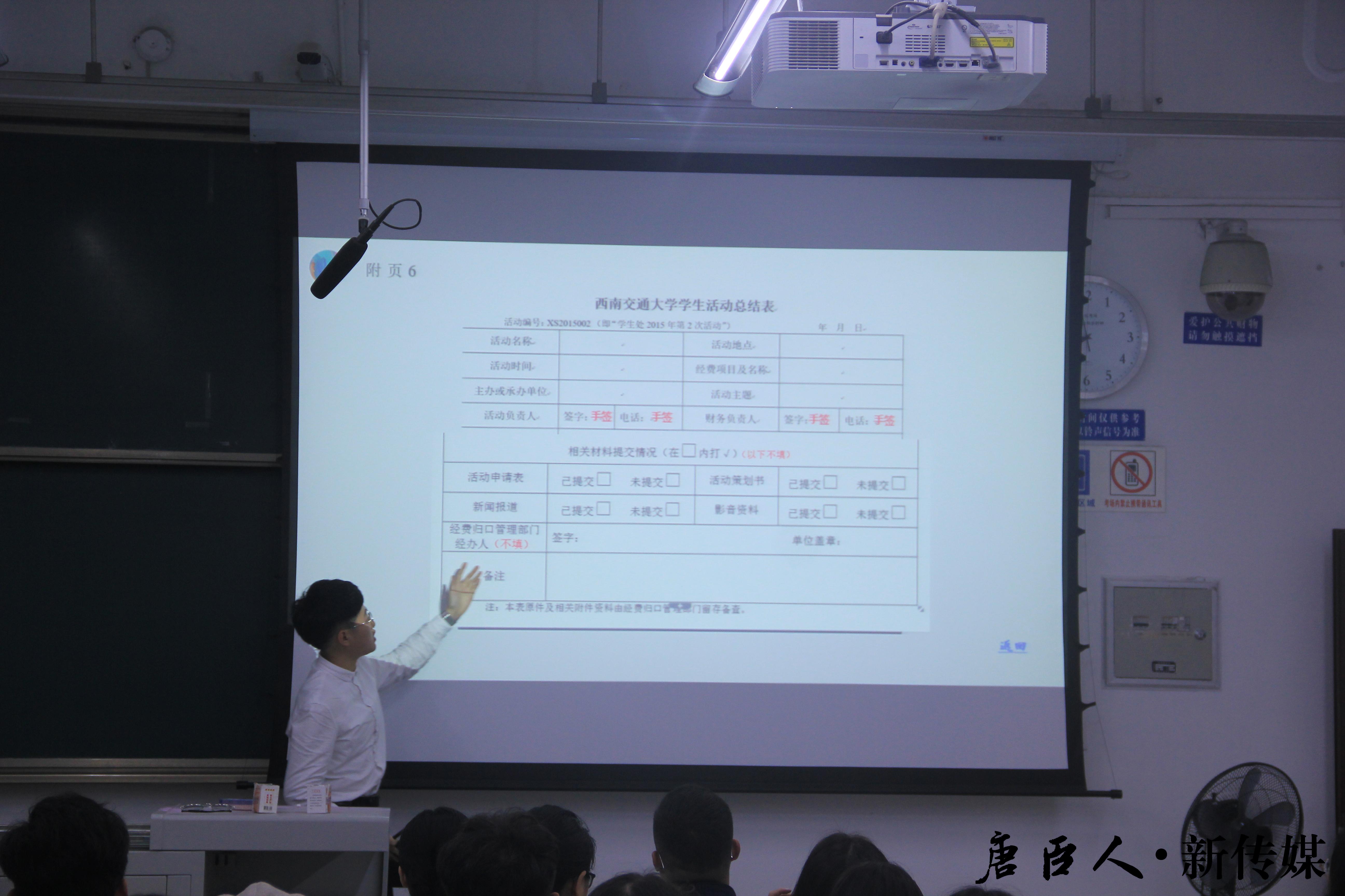 在讲座正式开始前,雷老师首先向各位团学干部强调了本次讲座的重要性,希望大家都能认真学习财务管理知识,增本领、长才干。随后,计财处工作人员对计财处概况及各项活动或项目的报账方法进行了介绍。计财处位于91九色