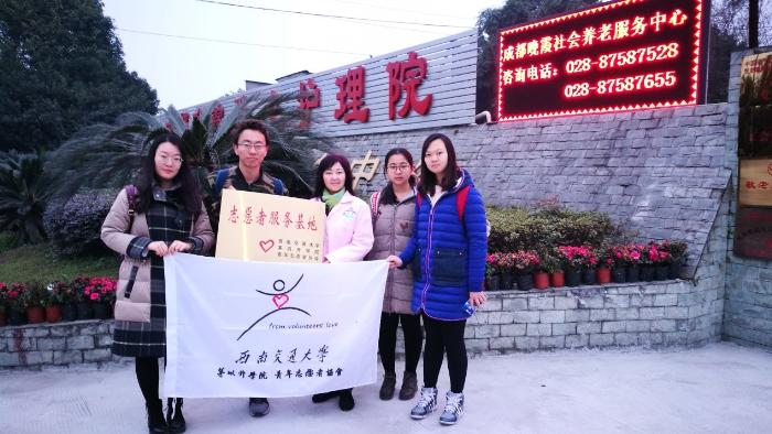 2017年12月12日上午7:30-9:00,我院青协栗广暄张赫两位会长带领周彦希、廖紫穹两位部长前往成都晚霞养老中心进行挂牌。