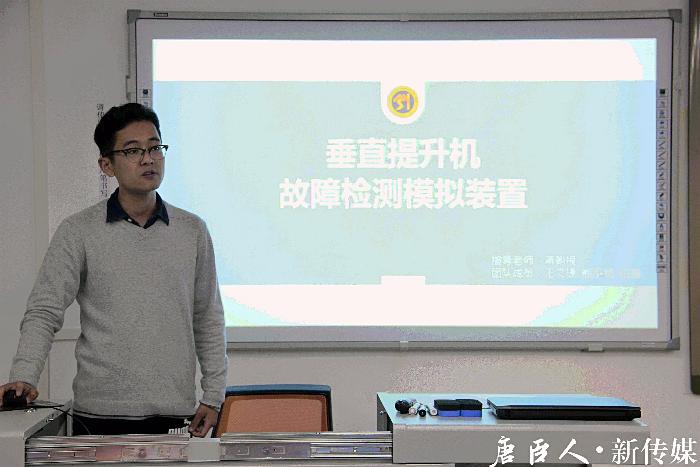 之后第六小组的王文捷同学展示了他们的科研项目“垂直提升机故障检测模拟装置”。三名成员计划设计一个能够检测垂直提升机故障的装置来解决工程中垂直提升机故障不好发现且不好解决的问题。发言完毕后,老师们建议用摄像采集的方式得到数据并去工程现场了解垂直提升机的更多情况。