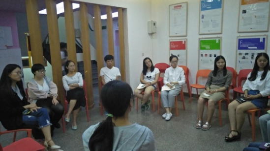 在简短的自我介绍后,大家对彼此有了一个初步的认识。首先进行的是15,16级班委工作经验分享。张文娟同学首先发言,她认为作为班长,需要统筹班上的大事琐事,团结班委和同学,同时也是学院、老师与同学间上传下达的桥梁。她说,要想做一个称职的班长,就要了解班上的大事小情。随后,16级班长王坤也发表了自己的看法。她指出,中文班在团结力方面稍逊于其他班,因此班长就更要发挥顶梁柱的作用,将同学们团结起来,同时也要发挥“保姆”的作用,处理好班上的琐事。