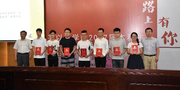 对李雯婧、陈璋、袁站东、刘元立、章懰、吕洋、张妍、田弘长、赵伊楠、孙越、刘欢、汤皓、赵雪薇、左盟、姜晗、吴帅16名同学颁发特优荣誉证书,对聂平稳等163名同学颁发荣誉证书的决定。冯晓云院长为获得特优荣誉证书的同学们进行了颁奖。与会各位领导和嘉宾分别为荣誉证书获得者颁发了证书。