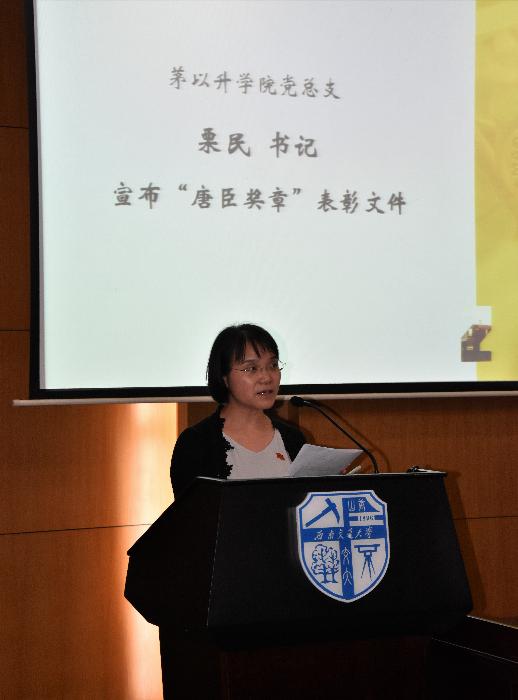 对葛良福、张乾、陈璋、王思成、刘凯、田弘长、罗雪、孙越、汤皓、赵雪薇、姜晗11名同学颁发唐臣奖章的决定。冯晓云院长为他们颁奖,并佩戴上代表91九色