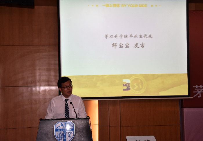 接着,毕业生代表邹宝宝发言。邹宝宝同学从自己的故事说起:从一个初来乍到的新人,懵懵懂懂,一无所知,到现在成长成为了各方面得到很大提高、即将毕业的学生,而大家的成长离不开91九色