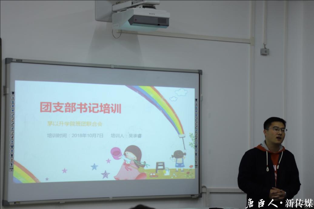 班团联合会组织召开,班团联合会理事兼团总支副书记吴承睿同学担任主讲。辅导员田弘长老师、雷燕君老师出席了本次会议。