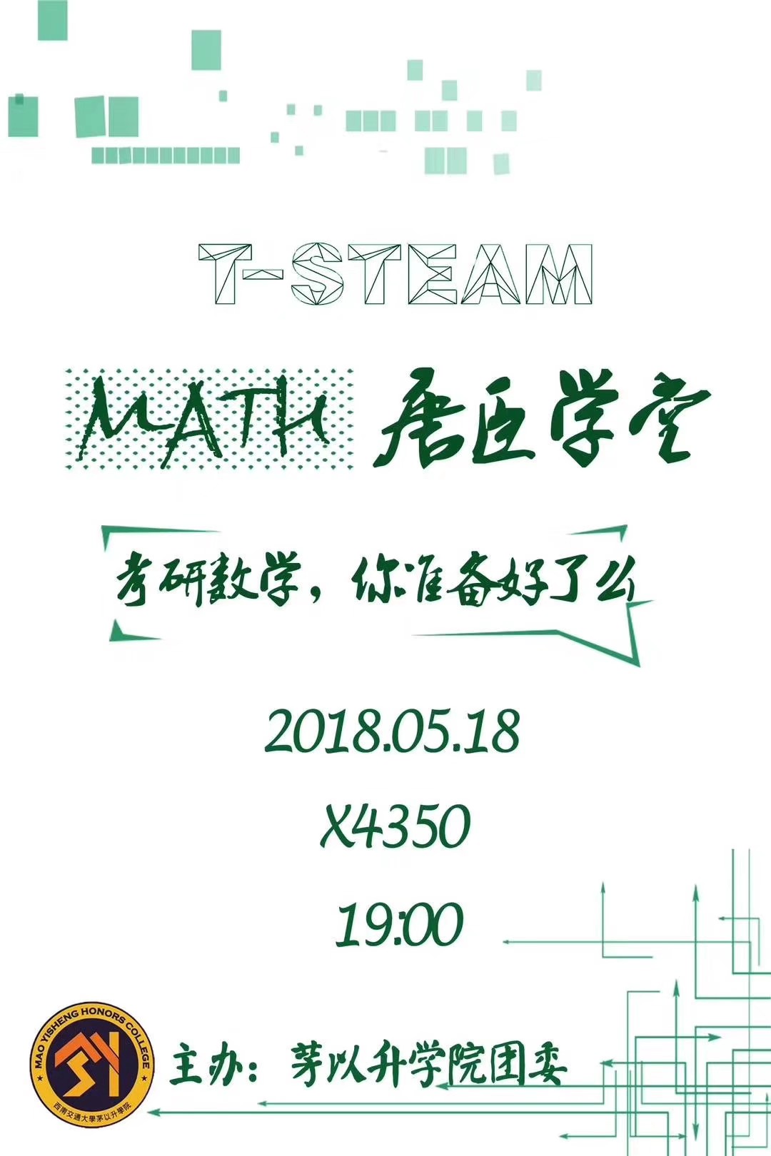 数学讲堂:傅里叶说:“数学主要的目标是公众的利益和自然现象的解释”。高斯也曾说过:“给我最大快乐的,不是已懂得知识,而是不断的学习;不是已有的东西,而是不断的获取;不是已达到的高度,而是继续不断的攀登。”本活动旨在帮助大家明晰考研数学流程,解答考研数学疑难点,考试重点预估等相关疑惑,带领大家直击考研干货。