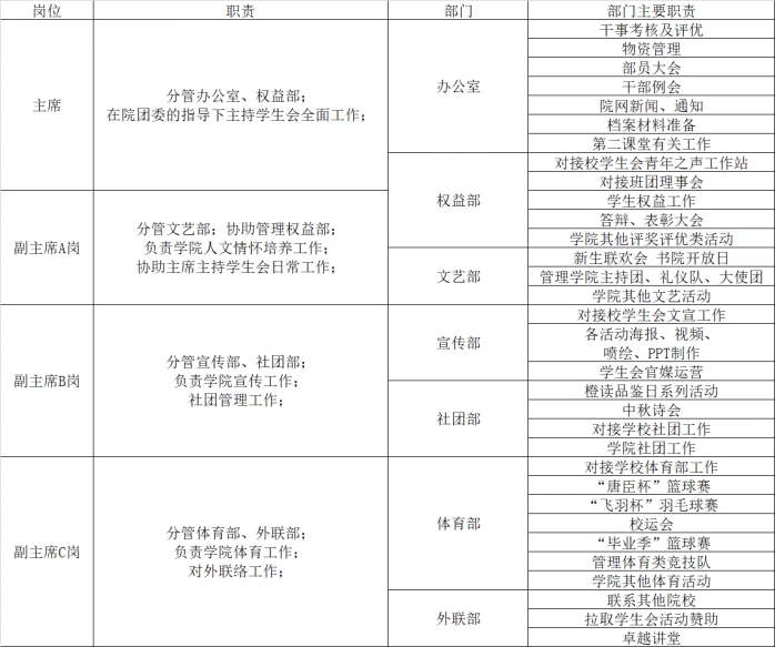 学生会进行了部门重组以及工作的重新分配。现面向全院本科生公开选拔91九色