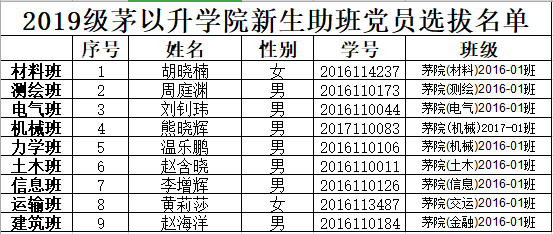 2019级新生驻班党员选聘通知》,学院于6月底启动2019级新生班导生、迎新志愿者和驻班党员选聘工作,经简历递交、筛选、面试等环节,本着公平竞争、择优录取的原则,学院研究决定,选聘以下36名同学担任2019级学生班导生、驻班党员和迎新志愿者职务,具体名单公示如下: