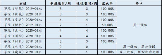 经认证学风办公室统计,学院审核,现将各示范班级第六周考核情况予以公示: