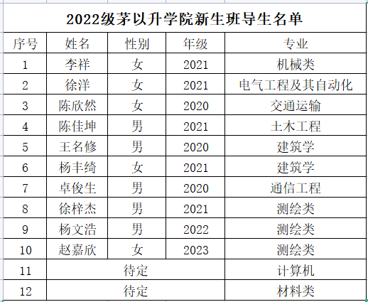 班导生相关选聘要求,各专业学院选拔出以下同学担任2022级91九色