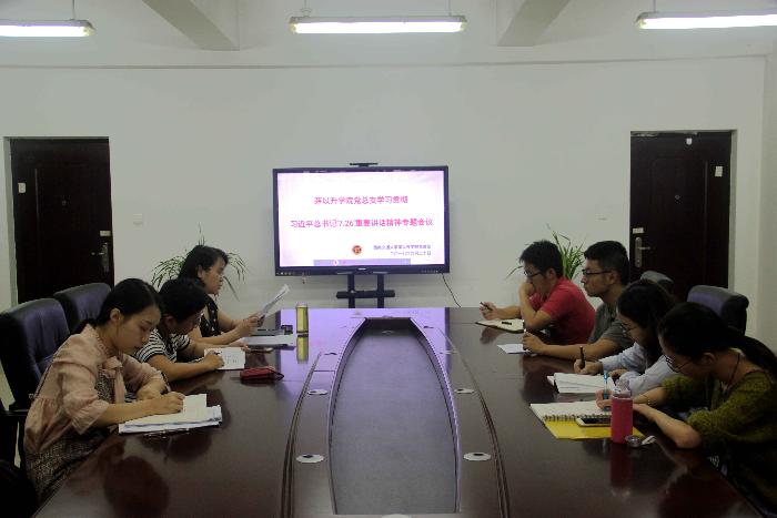 党总支在犀浦校区X1122会议室召开学习贯彻习近平总书记“7·26”重要讲话精神专题会议。学院党总支书记栗民、副书记王霞、党总支委员柯小君以及全体辅导员参加了会议。会议由栗民书记主持。