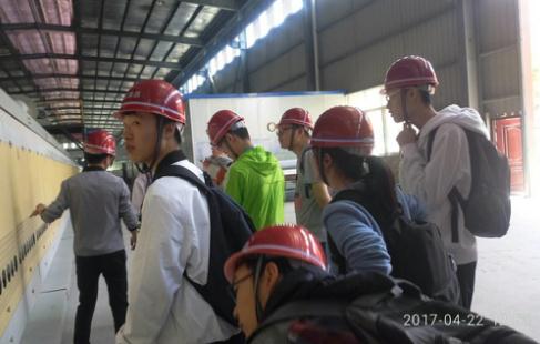 其生产基地位于享誉国际的花岗石“中国红”产地——四川雅安荥经县烈太新城,占地约700余亩,本次实践活动即在此展开。同学们首先进入了总部附近的微晶石工厂,近距离接触了微晶石建材成品从入料生产微晶石原始面板,到微晶石的粗加工,再经历上色,彩绘等等的系列生产过程,从中了解到该企业杰出的创造精神和强劲的发展势头,但与此同时也发现了一些问题,例如切割设备及涂料等关键生产要件目前仍然依赖进口,国内技术亟待开发更进。