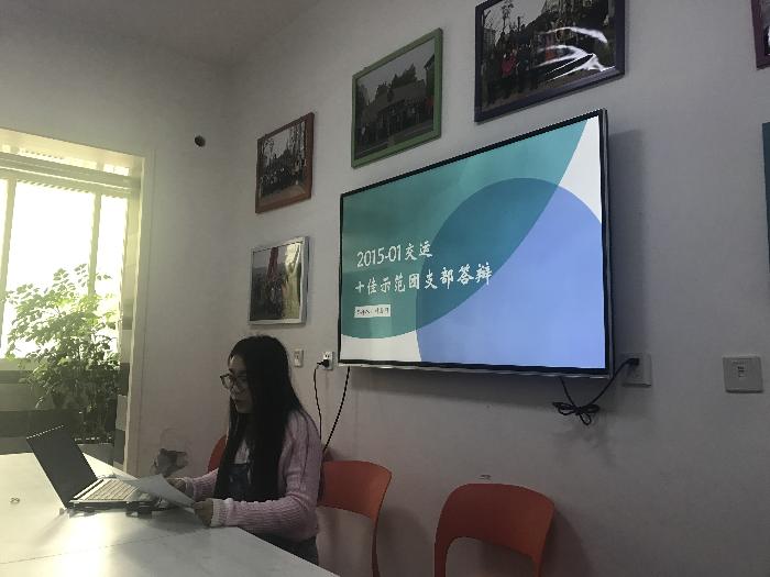 答辩由团支部陈述和评委问答两部分组成,各支部紧密结合本班团学工作实情,激情展演,亮点频现。茅院(金融)2015-01团支部稳扎稳打,注重基础工作落实,团员覆盖率、入党申请书提交率均为100%;茅院(交运)2015-01团支部力争上游,成绩出色,文明寝室达标率为100%;茅院(土木)2015-01团支部倾情打造支部文化,由“土”“木”两字组成“未”字班级标志,象征着成员们展望未来的向上风貌···王霞老师在评委问答环节语重心长地强调,班团活动相连、相通,示范团支部要落实三会两制一课制度,将共青团中央的纲领性文件学习常态化,切实发挥共青团思想引领的作用、青年团员的先锋模范作用,形成合力,才能真正打造一批有我院办学特色、会思考、富才情的示范团支部。
