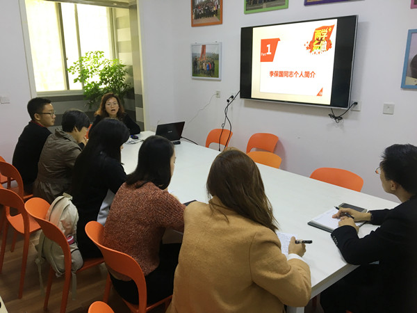 随后,与会人员观看了《焦点访谈——李保国:魂系太行》节目对李保国同志先进事迹的详细报道。观看视频后,王霞同志就如何学习李保国同志作了详细阐述,她宣读了习近平对李保国同志先进事迹的重要批示,并对党员同志从哪些方面学习做了以下要求,要学习李保国同志对党忠诚、心系群众的政治品质;要学习李保国同志艰苦奋斗、务实拼搏的进取精神;要学习李保国同志淡泊名利、甘于奉献的价值追求。广大教育工作者要以李保国同志为标杆,自觉加强人格修养,改造世界观、价值观,公而忘私、干净做事,激情奉献、奋发有为,爱岗敬业、立德树人,努力为社会发展提供人才和智力支撑。