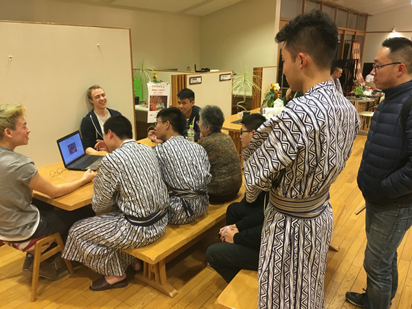 窗明几净的房间,典雅舒适的庭院和走廊,热情的店主,周到细致的服务,都让同学们在每日忙碌充实的访学活动结束之后,有一个让身心得到放松,让心灵得到升华的处所。特别是每晚在酒店大厅举行的趣味活动,如天文观测,茶道学习,书法交流等等,都成了同学们与在青旅居住的其他国家学生相互交流,体验日本文化的绝佳方式。