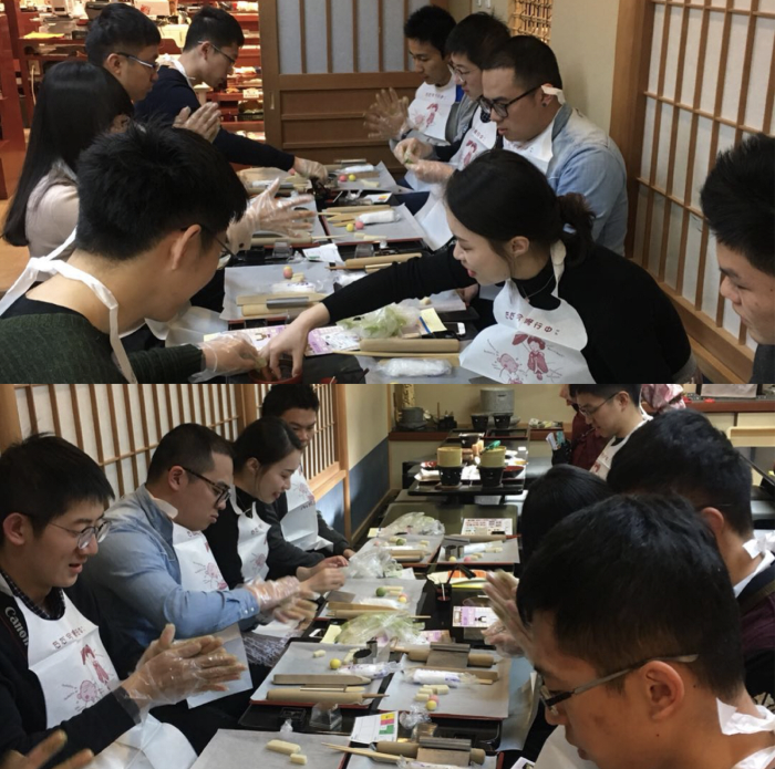 1月31日,访学团体验学习了日式点心——和果子的制作。和果子泛指日式糕点,它更像是日本传统艺术品,其精致的造型完美地表现了日本人对饮食美学的追求,成为日本饮食文化的象征之一。和果子保存期限短,一般只能存放两天左右,要趁鲜食用。同学们体验制作和果子,利用事先准备好的面料,经过揉捏,刻印等一系列加工后,变成了可赏可尝的精致工艺品。