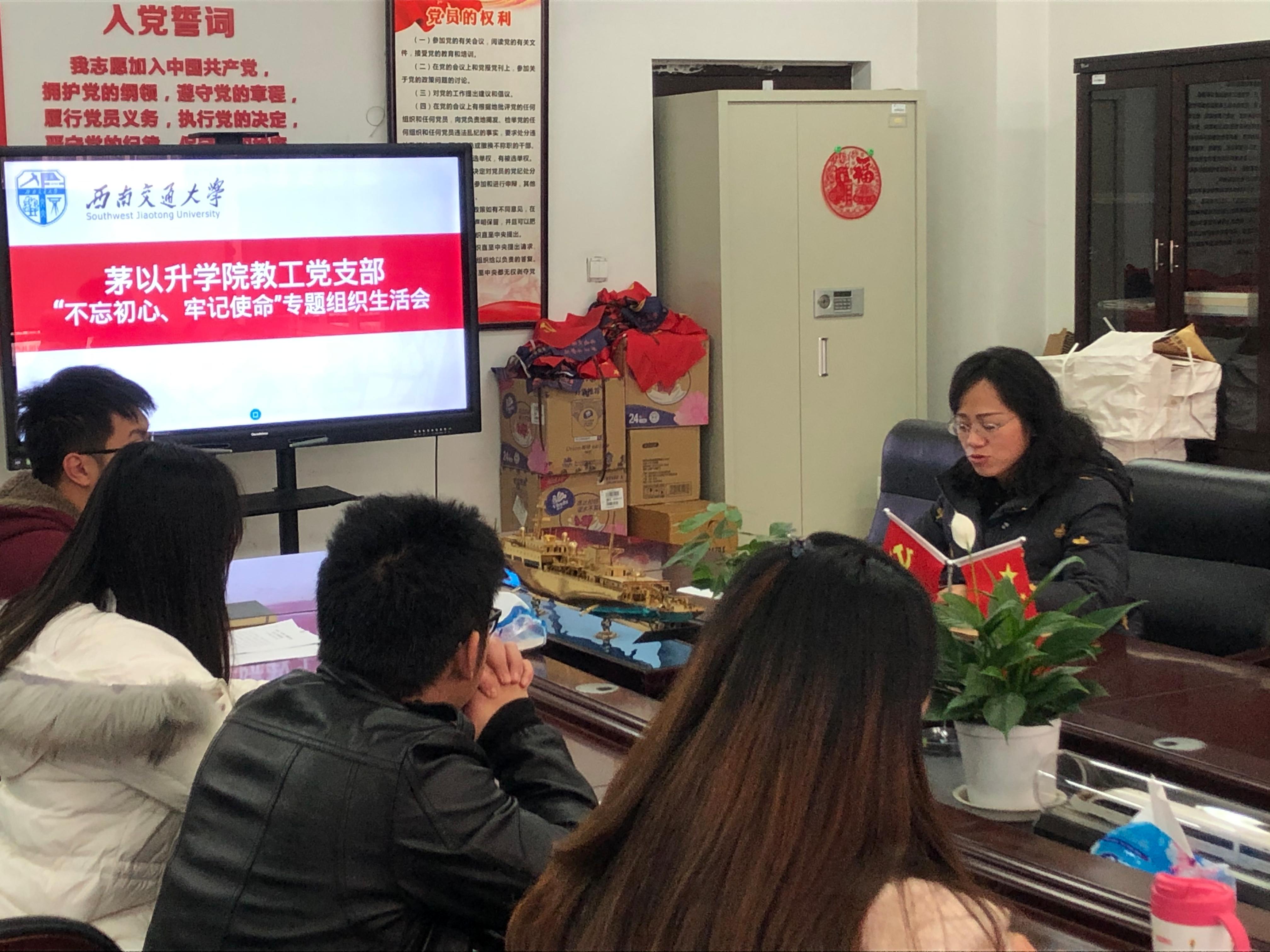 教工党支部召开“不忘初心、牢记使命”专题组织生活会暨民主评议党员会议。会议紧扣学习贯彻习近平新时代中国特色社会主义思想主线,聚焦“不忘初心、牢记使命”主题,围绕理论学习有收获、思想政治受洗礼、干事创业敢担当、为民服务解难题、清正廉洁作表率的目标。按照习近平总书记关于“四个对照”、“四个找一找”的要求,盘点收获、检视问题、深刻剖析。