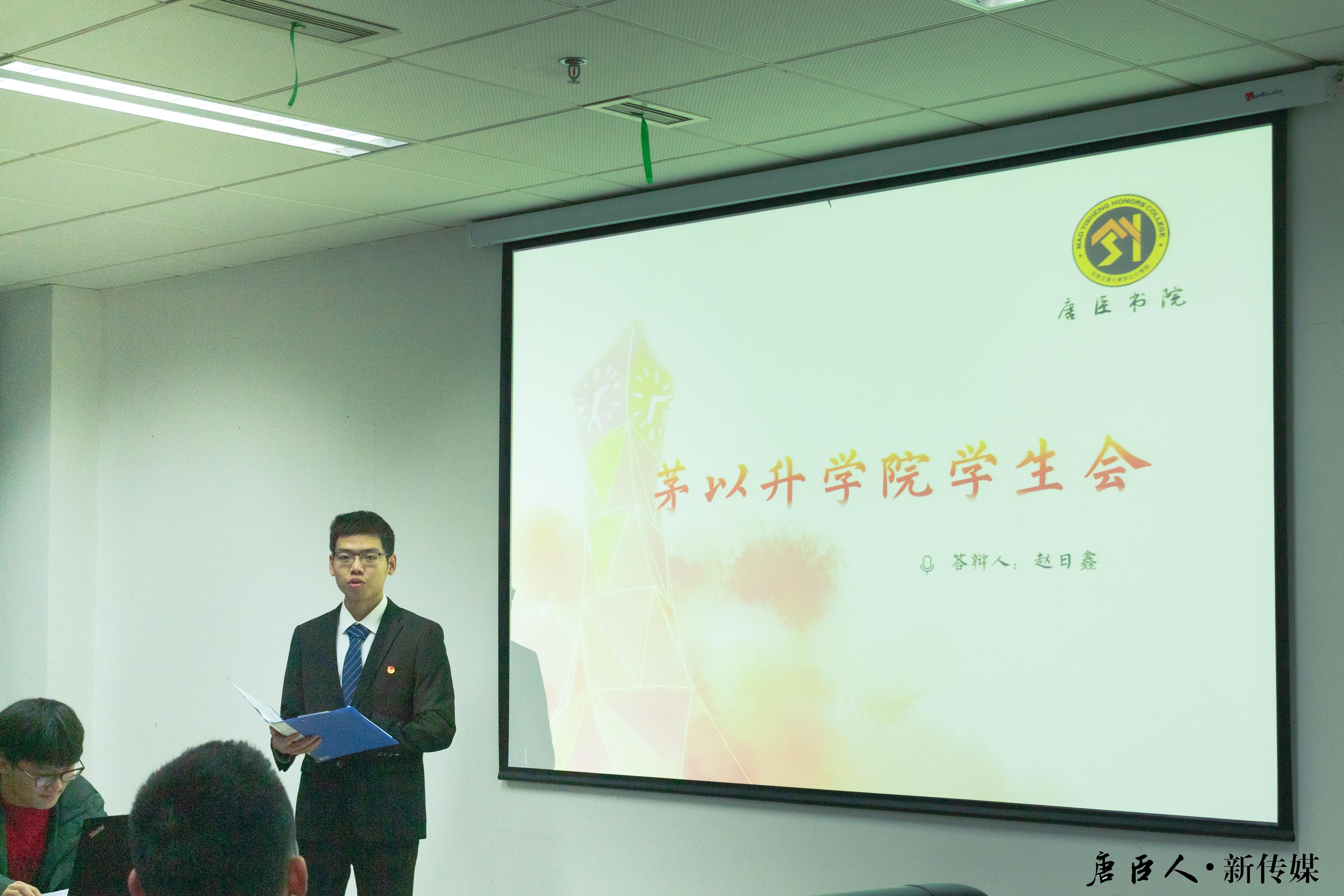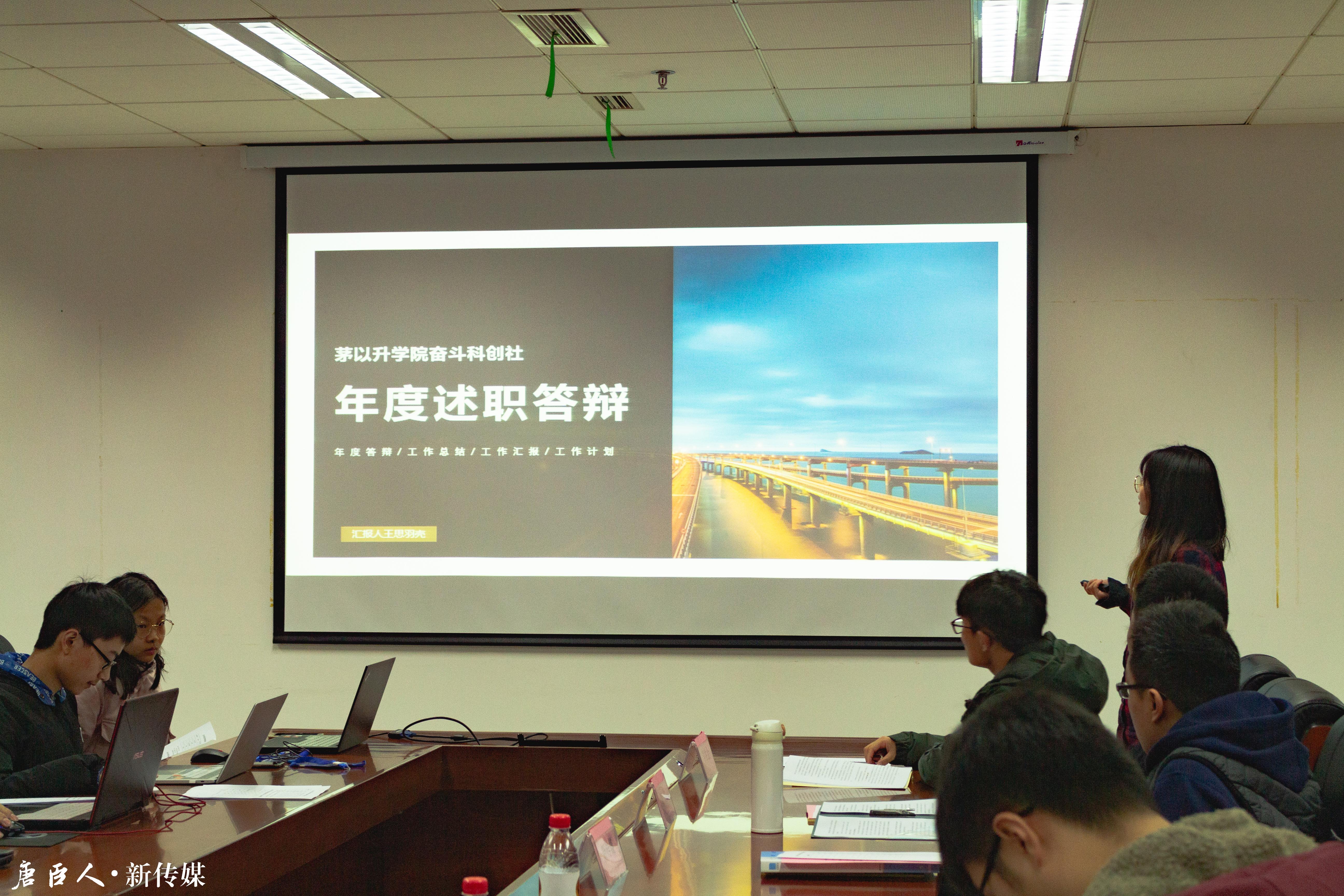 在本次述职答辩会上,15个社团与学生组织的负责人一一上台答辩,对过去一年的工作进行了回顾与反思。他们有的如数家珍,细说了自己所在组织举办的一场场活动,言辞间溢满了自豪;有的讲述了他们为更好地服务茅院学子所做的种种努力,让在场的老师们都禁不住连连点头;还有的完美地完成了本职工作,同样为建设茅院立下了汗马功劳。