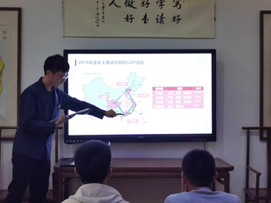 活动伊始先奏唱团歌,随后团支书向大家介绍了“成渝双城经济圈”的战略意义、基本格局、建设渊源、发展前景以及青年与地区经济的联系,同学们积极讨论,其中,本团支部崔永康同学积极回答问题,加深同学们对三个“经济圈”或“经济带”的认识。