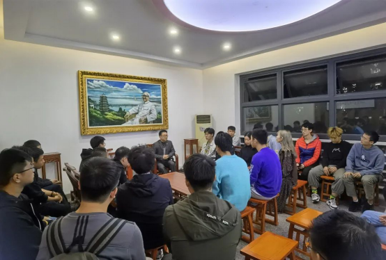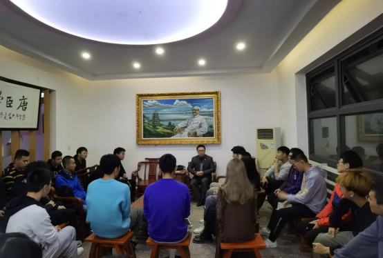 于唐臣书院三楼召开与2017级班干部“书记心连心”座谈会,党总支书记甘霖书记与2017级全体班干部参与座谈会。