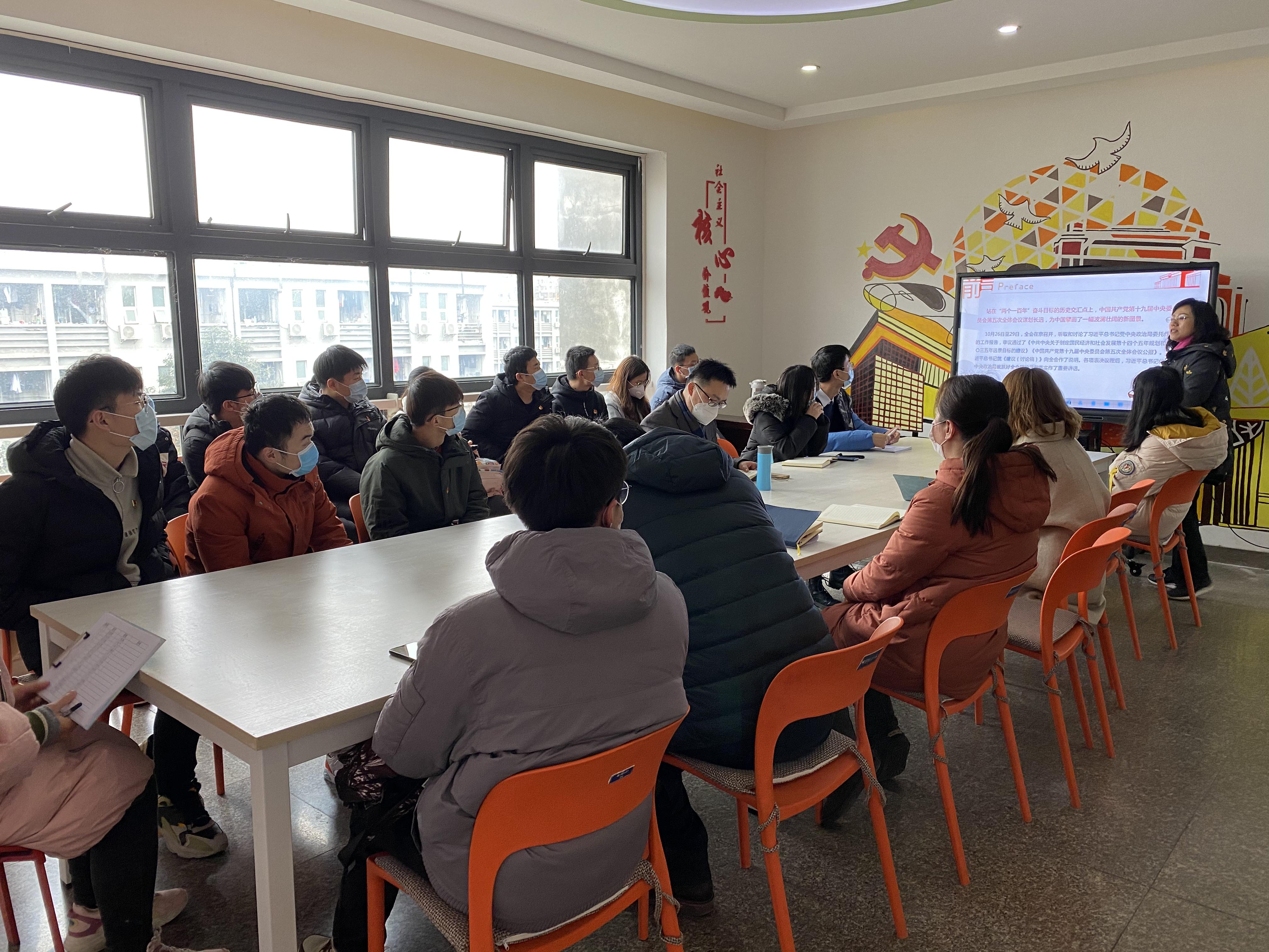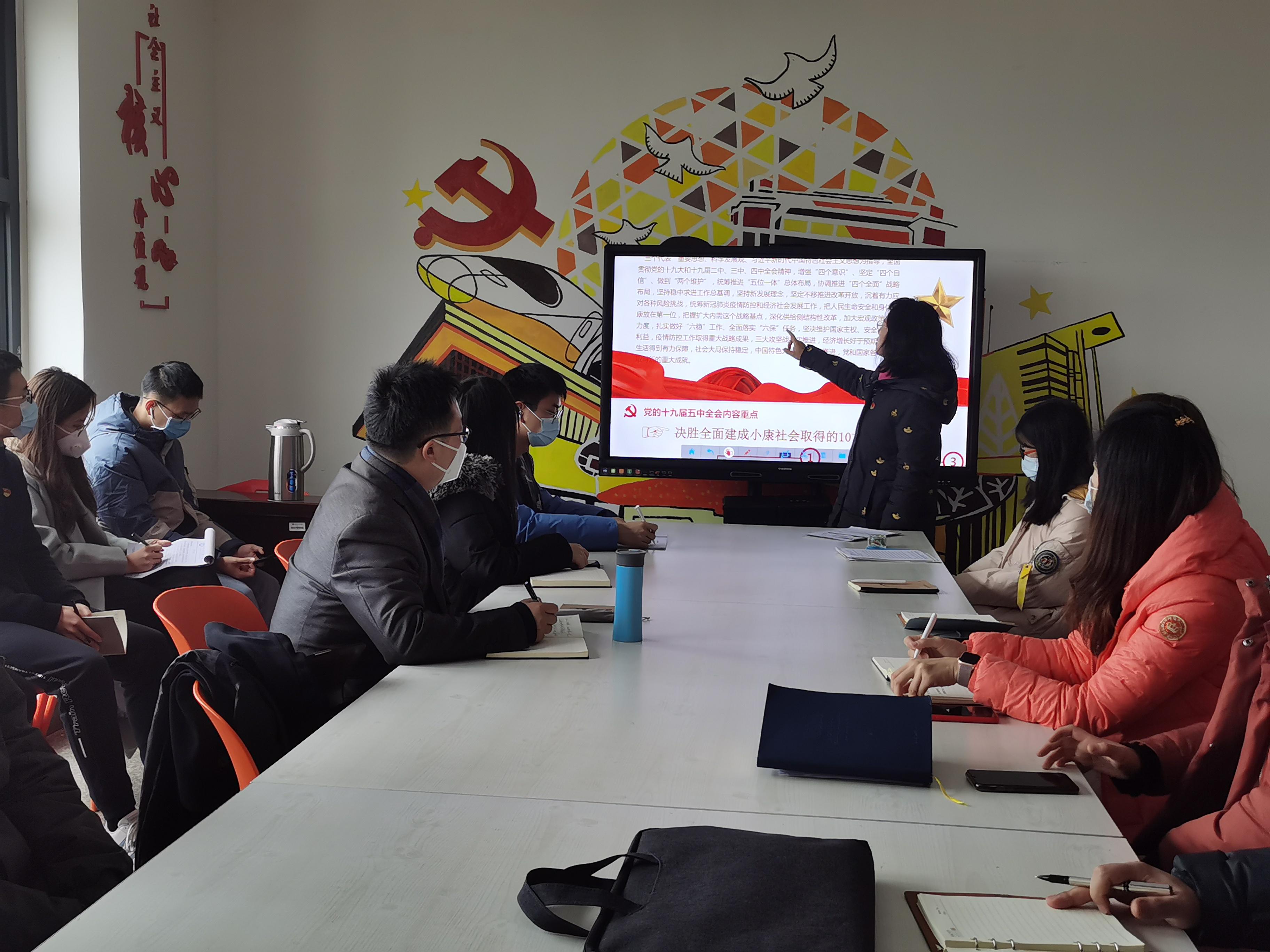 党总支全体党员于唐臣书院六楼“励志厅”开展了“深入学习贯彻党的十九届五中全会精神,全面学习解读公报内容”的党课活动。党课由王霞副书记主讲。