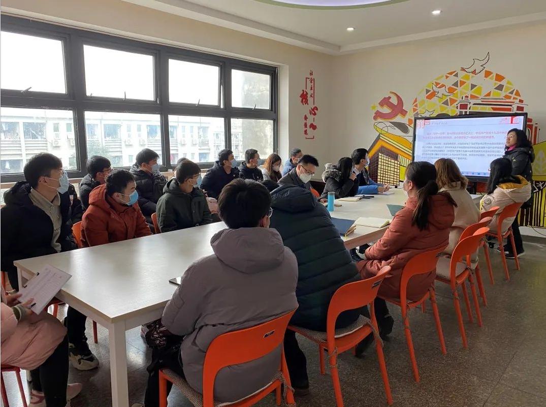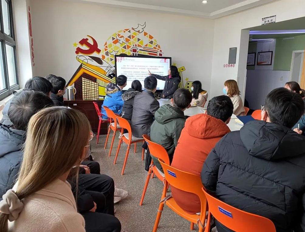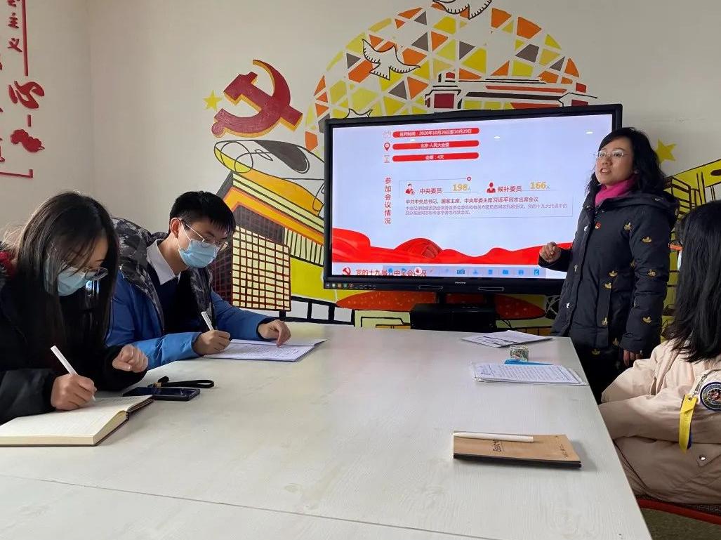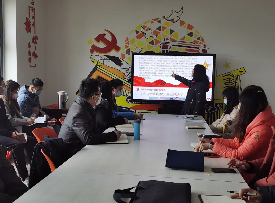 党总支全体党员于唐臣书院六楼“励志厅”开展了“深入学习贯彻党的十九届五中全会精神,全面学习解读公报内容”的党课活动。党课由王霞副书记主讲。