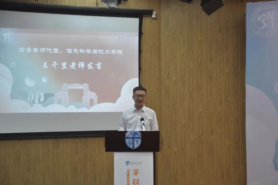 荣誉导师受聘仪式,由康国政院长为各相关专业学院荣誉导师颁发聘书。随后,2022级新生荣誉导师代表、信息科学与技术学院王千里老师发言,作为四年求学生活最亲近的人,班导师在同学们成长成才历程中扮演着不可或缺的角色,王老师激励同学们身处不确定的时代当中,做到“屯才,屯学,屯识,屯体”,增强自身能力和底气,勇担时代之梁。接下来,全体唐臣书院驻院导师带来配乐诗朗诵——《唐臣青年》,导师们掷地有声、字字铿锵,诵出了唐臣青年的向上风貌。
