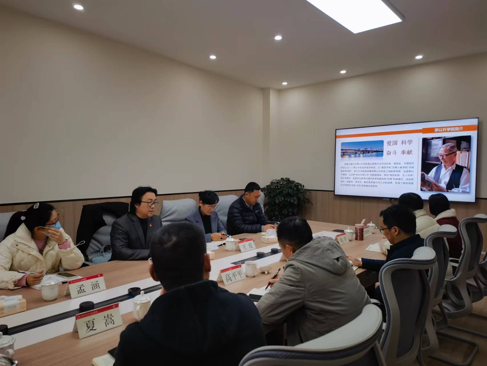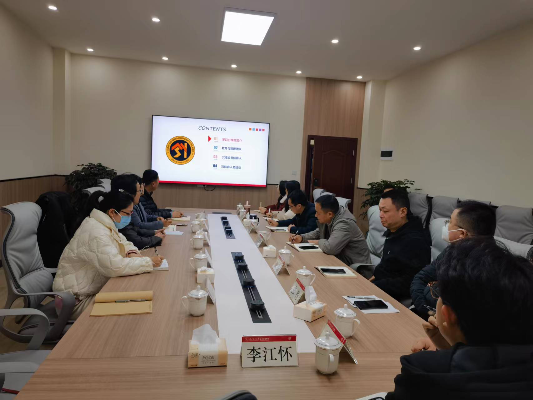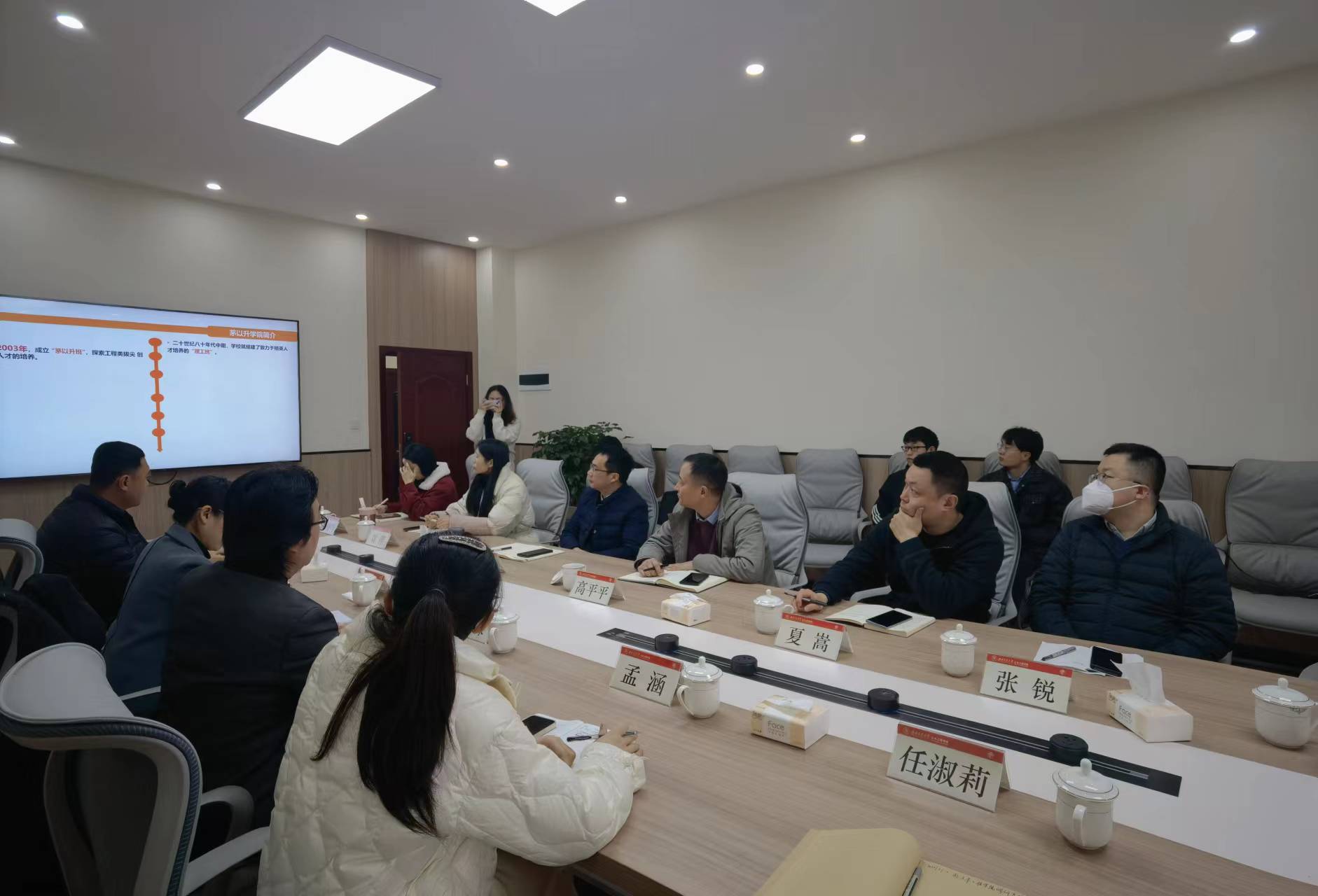 唐臣书院驻院导师“一站式”工作模式、书院制沉浸式育人体系进行了介绍,并表达了对深化建设“专业学院 + 唐臣书院”联合培养体的期待,希望未来两院能够进一步深化交流,加强在思政育人、科研实践等方面的合作,共同推动高质量育人工作。随后,双方就双院协同育人探索相关事项展开交流,对专业学院在唐臣书院举办“学术科创周”、设立“专业书房”、选派专业导师指导跨学科科创团队及联合承办校级活动、联合开展创新性育人项目课题研究等相关事项达成共识,交流气氛热烈,内容丰富,务实高效。