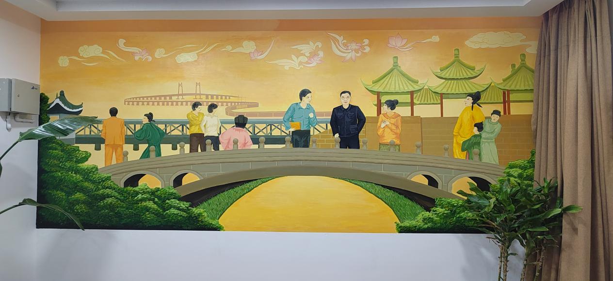 为了庆祝“茅以升班”创建20周年,精心打造了传承茅以升精神的主题育人空间“唐臣学堂”,并邀请建筑学院美术系刘春尧老师指导的优秀毕业生汪鑫鑫、杨湘钇两位同学创作了两幅主题壁画《奋斗•跨越时空的对话》《青春•大地》,得到了茅玉麟女士的高度赞许,茅院师生对茅以升先生的崇敬之情和弘扬茅以升精神的自觉担当深深感动了茅以升先生的女儿。