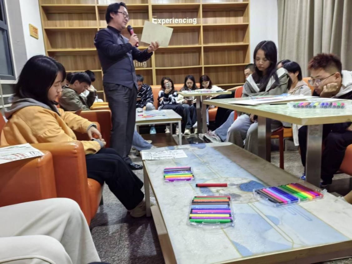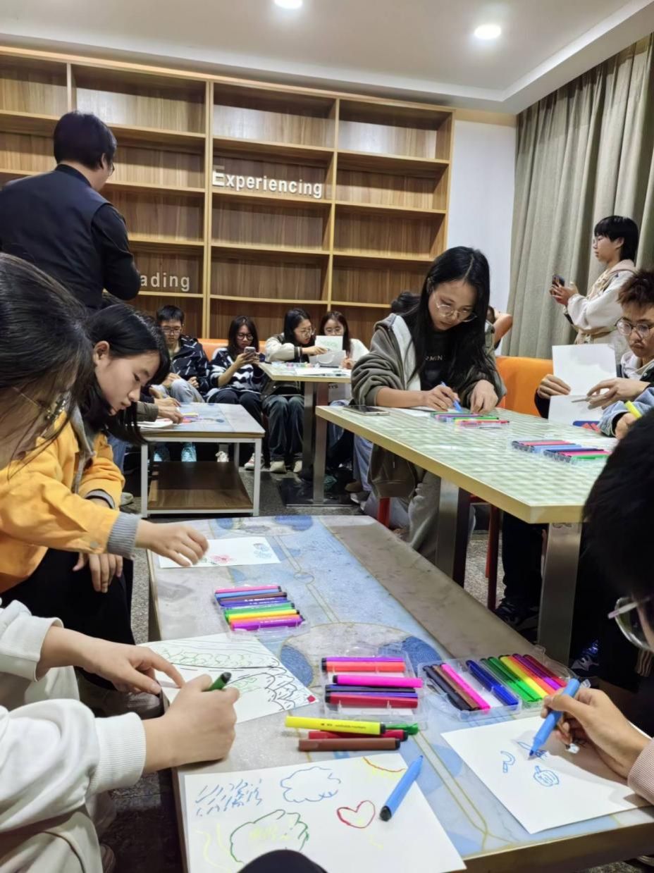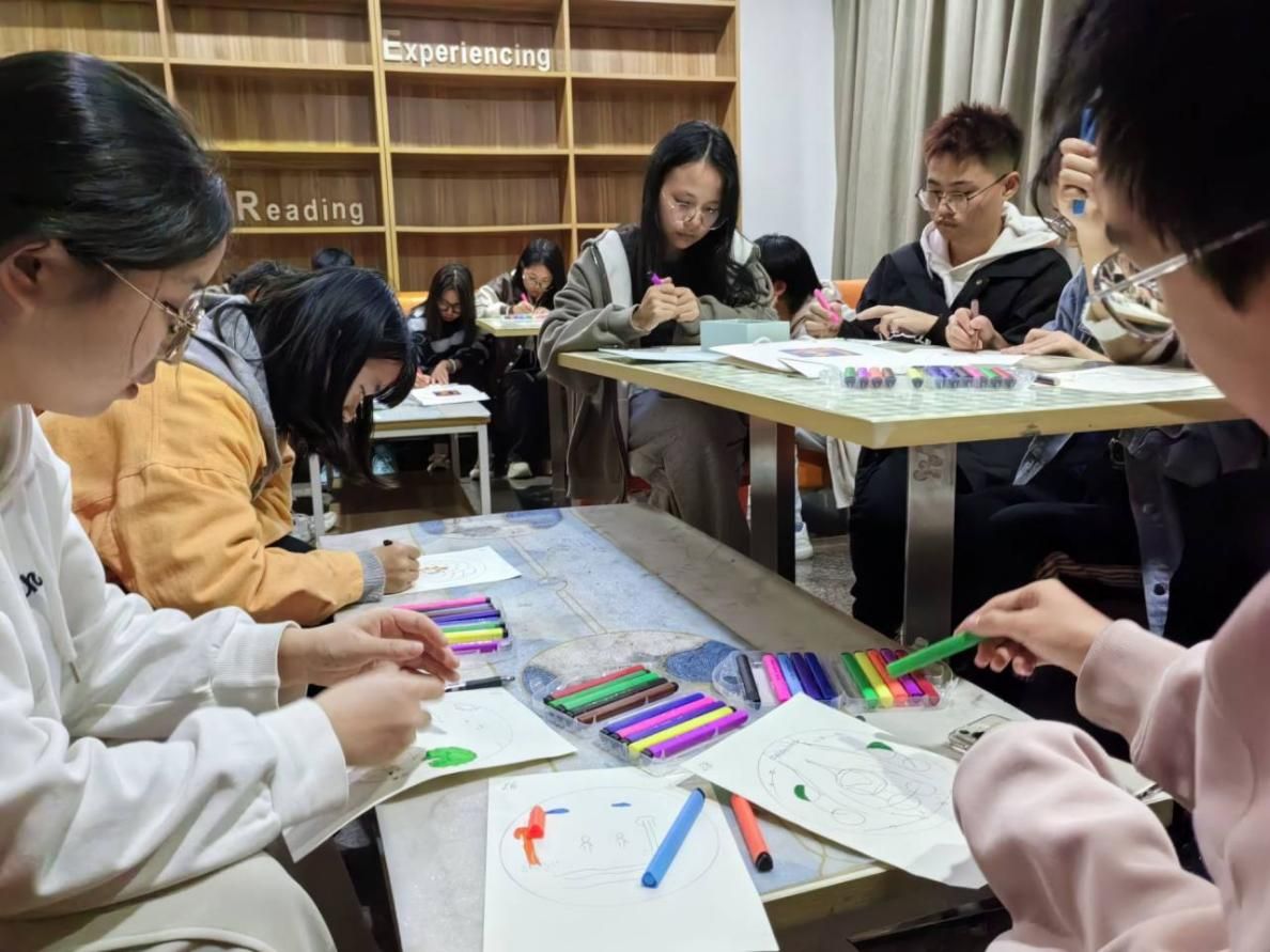 在书院四楼“心灵家园”开展了 “唐臣心语”心理育人系列活动之“艺术彩绘心理疗愈”。本次活动由唐臣书院心力社承办,91九色