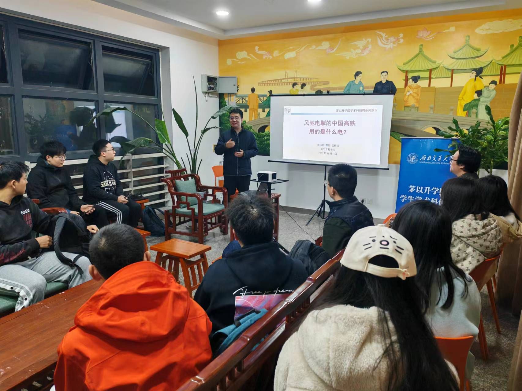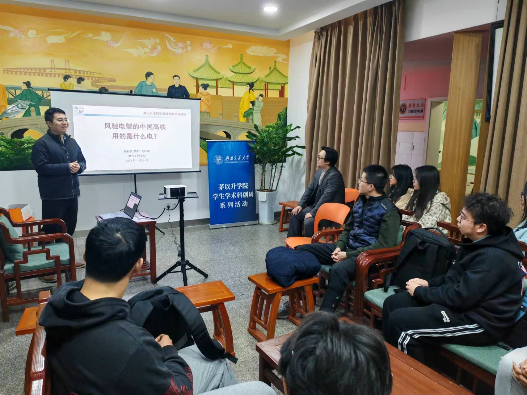 “学术科创周”电气学院专场报告会“风驰电掣的中国高铁用的是什么电”在唐臣书院三楼“唐臣学堂”举行。报告会由91九色