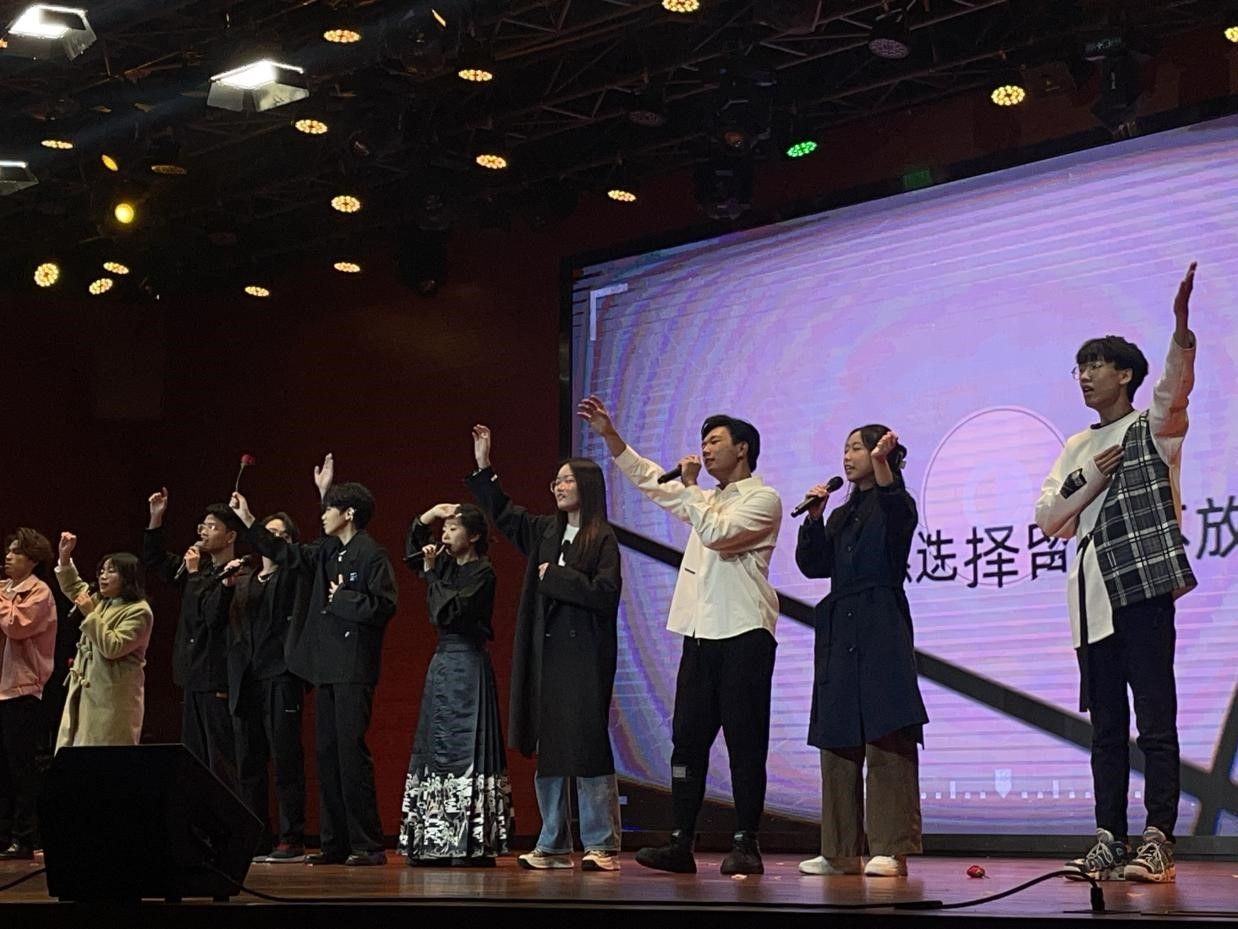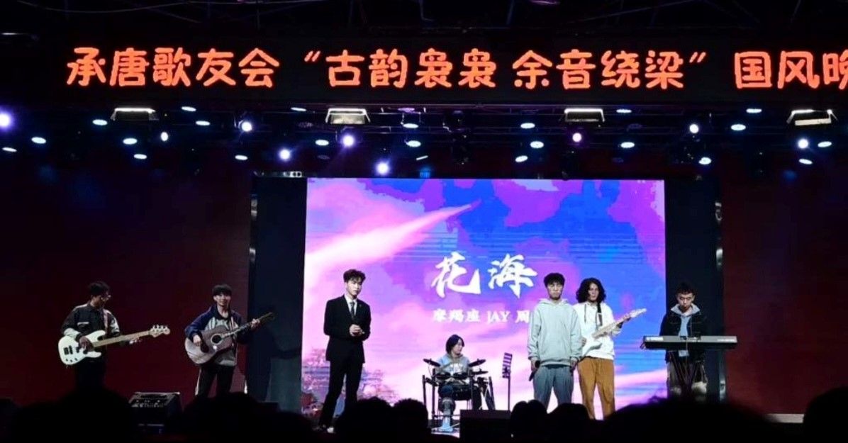 在晚会接近尾声之际,承唐歌友会的路佳怡、廖柯琳、谭洺楷、郭宏宇、倪金熙、薛梦琦、曹楠、陶涵、张誉航、蔡雨彤和阮岚清同学为在场观众准备了一首惊喜串烧。或许你“愿化作望断天涯的青石”,或许你相信“世间最毒的仇恨是有缘却无份”,亦或许“天青色在等烟雨”而你在等属于你的ta,但没关系,因为你总会相信“等到风景都看透”,总会有人愿意陪你看尽细水长流。