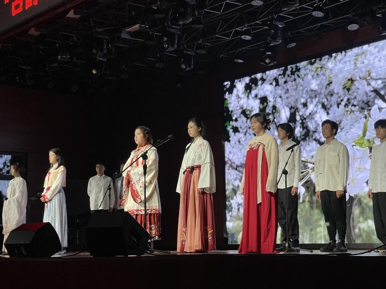 紧接着,由李羽彤、张誉航、李天意、杨廷晗、张靖晗、王冠雯六位同学带来的重唱歌曲《琵琶行》。这首歌的歌词取自最著名的中国古诗《琵琶行》,在改编成歌曲之后,用节奏欢快、旋律和谐的特点把古典音乐的精髓融入到了现代的复古音乐风格之中,给人带来新奇与乐趣。