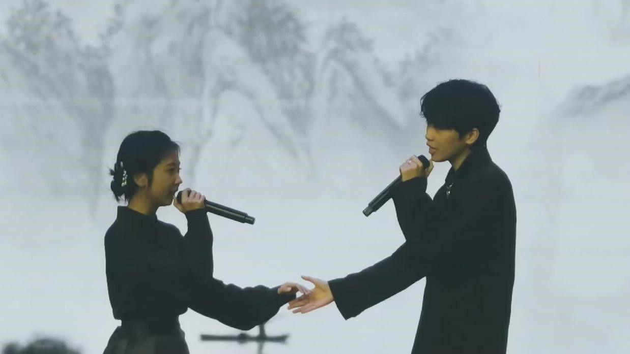 廖柯琳、路佳怡两位同学带来的女声二重唱《燕归巢》。这首歌以琵琶、牧笛等元素打造全新中国风歌曲,充分展现了在外游子思乡的故事。“寒梅落尽,燕衔春柳,家书千行不及游子归来,执手相看泪眼朦胧”,当游子辛劳一年,踏上归家路途时,已是寒雪落尽,大地春回,旧时家中的一景一物,莫不牵动着人们的内心。游子重返故土时,那一份狂喜与心酸交织的情绪,用歌声画作妙笔,书写出充满古典美学的意境与神韵。