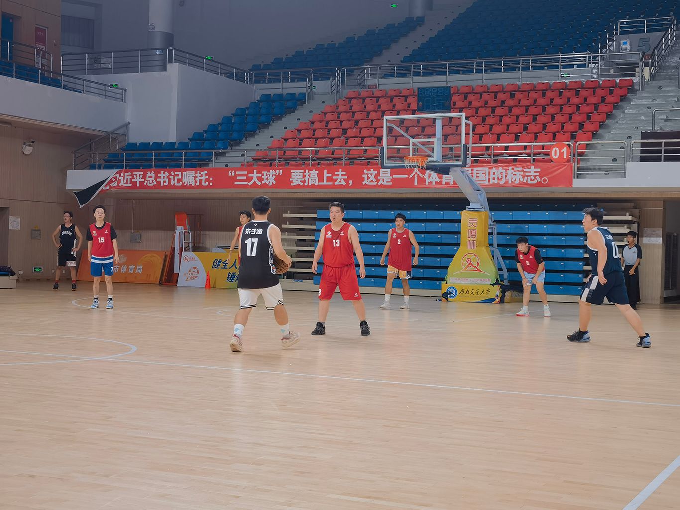 奔跑、跳跃、投篮,抢球、防守、进攻勇往直前,全力迎战,迎“篮”而上,追“球”梦想,赴青春赛场。本次篮球比赛的队伍是由非毕业班和毕业班茅院同学组成的红黑对决。