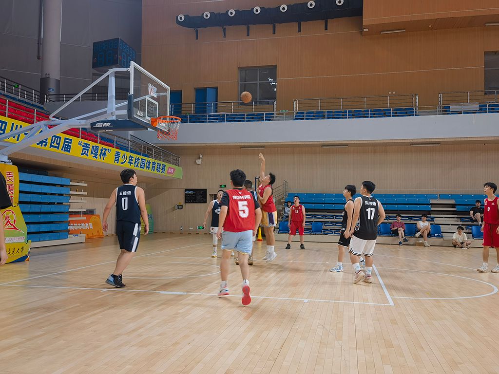 比赛伊始,双方球队便展开了激烈的角逐。球员们灵活多变的运球、精准犀利的传球、投篮,都展现了他们的高超技艺和顽强拼搏的精神。比赛中,双方的较量异常激烈,每一次进攻和防守都充满了紧张刺激的氛围。观众们的热情也被点燃,掌声、欢呼声此起彼伏,为同学们加油助威。 在比赛的关键时刻,比赛双方更是发挥出了强大的实力。双方凭借着出色的配合和精准的投篮,一次次打破对方的防线,斩获分数。