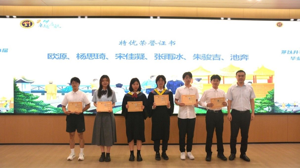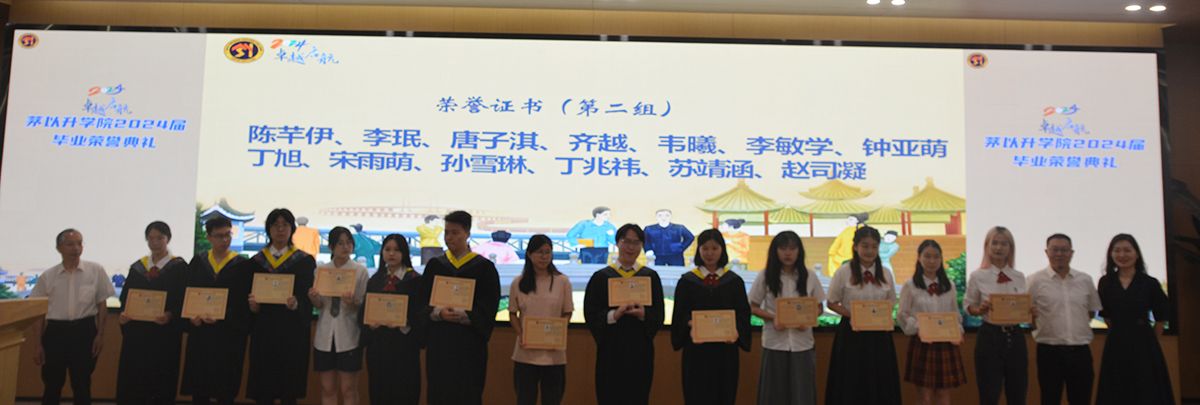常务副院长崔凯为获得“特优荣誉证书”的6位同学颁发证书;由招生就业处陈岩峰处长、教务处康锐副处长、土木工程学院茅班班导师魏江涛副教授,校团委副书记李娜、机械学院副院长田怀文教授、建筑学院茅班班导师代表熊瑛副教授,图书馆副馆长陈丽华、地球科学与工程学院党委副书记郑波、电气工程学院学生支持办公室主任张婷婷,分别为获得本科毕业生“荣誉证书”的29位同学颁奖。