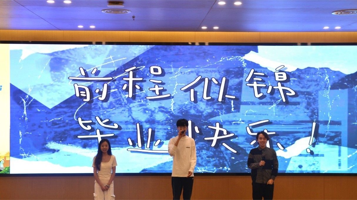 新传媒中心的同学倾心打造的开场视频《那些年我们一起走过》开启序幕。随着视频的播放,大学四年的点点滴滴浮现在每一个毕业生的眼前,视频中,有我们记忆深处最熟悉的地方、最热闹的场面、以及最难忘的身影,青春短暂而情谊无价。