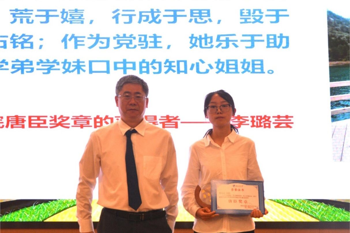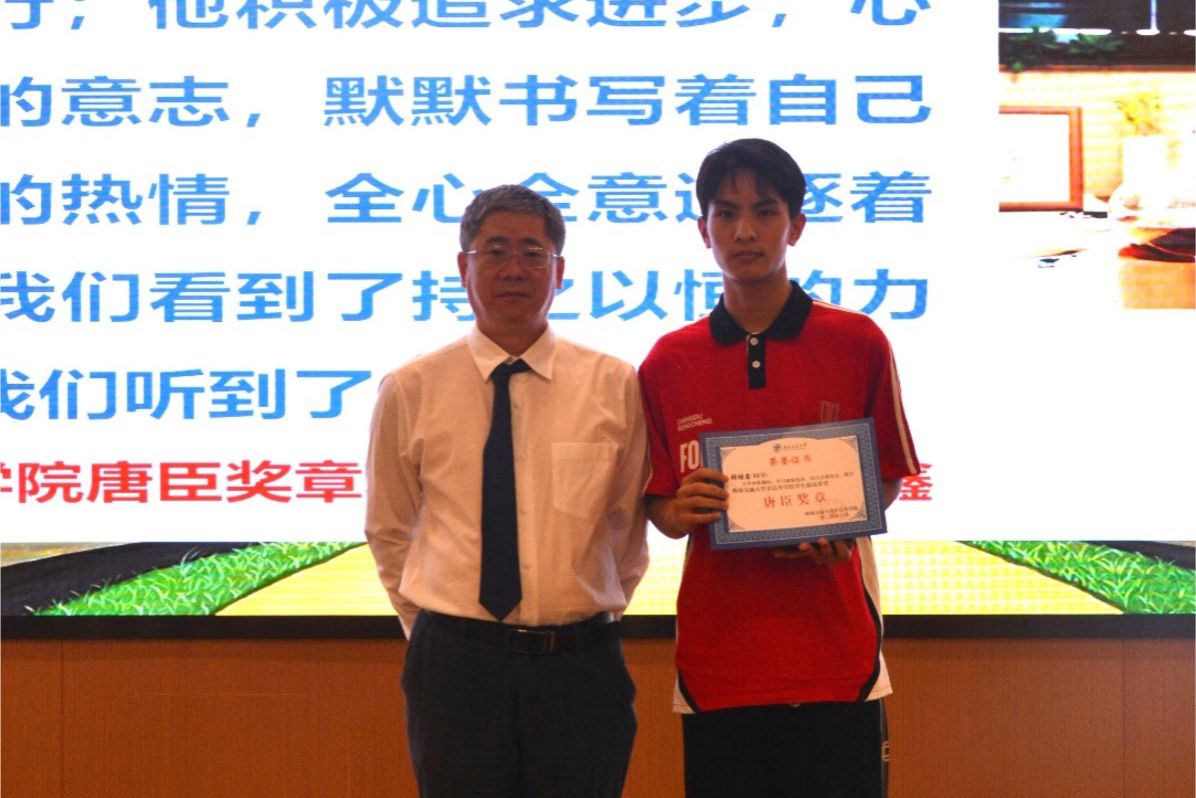 常务副院长崔凯宣读学院2024届学生最高荣誉“唐臣奖章”表彰文件,并由康国政院长对7位获得“唐臣奖章”的毕业生颁发奖杯及证书。