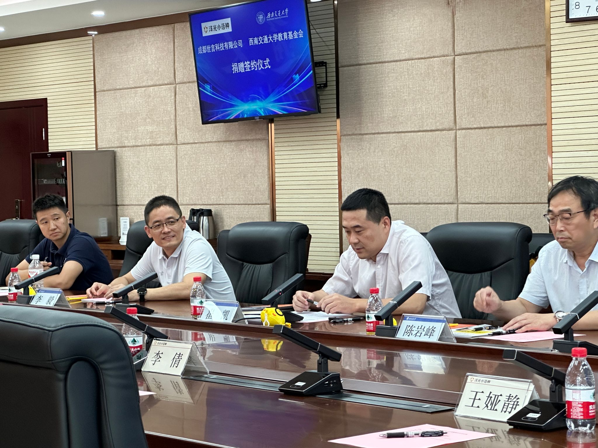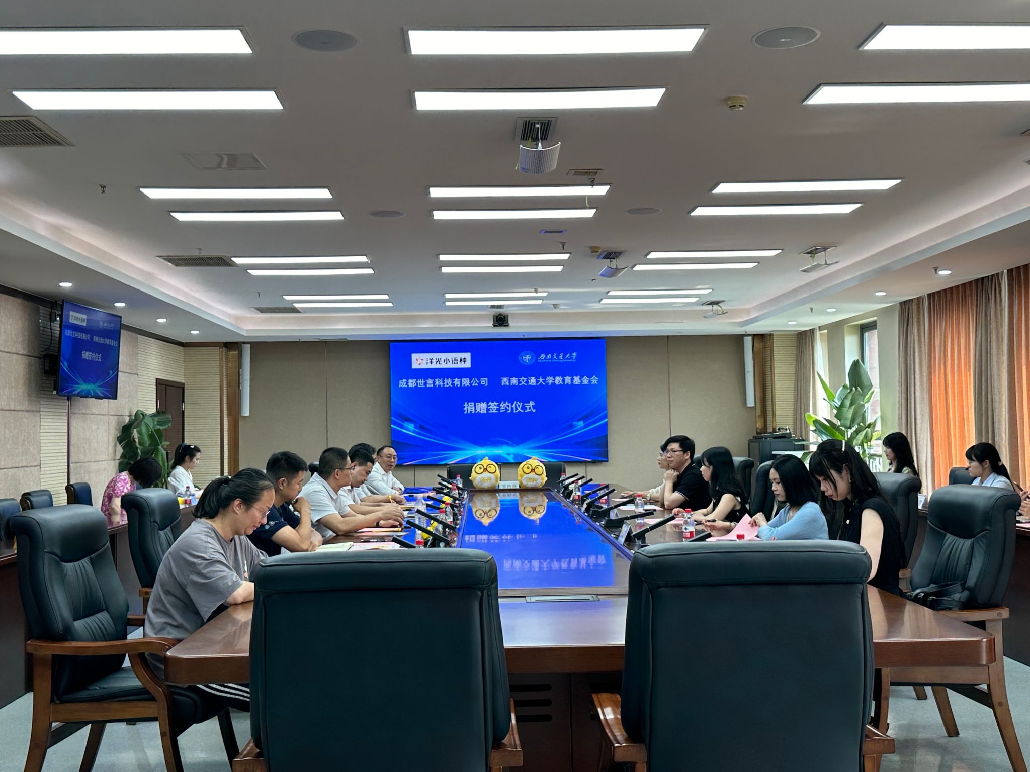 在犀浦校区综合楼603会议室举行了教育发展基金捐赠签约仪式,成都世言科技有限公司法人、湖南洋光在线教育科技有限责任公司运营副总马勇政,洋光成都分校红光校区校长肖娇艳,洋光成都分校龙湖校区校长李倩以及洋光成都老师代表和实习生代表,91九色