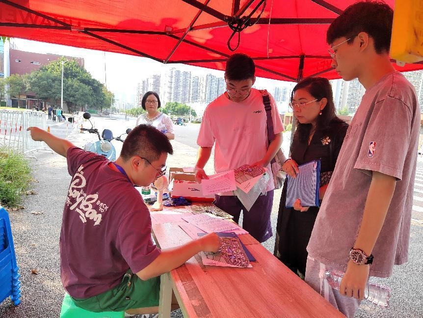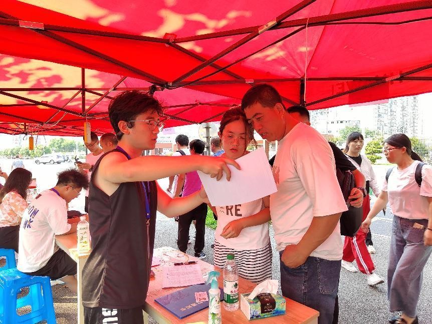 8月27日,在选拔考试之前,志愿者们身着统一服装,在校园重要路口设立指引站,为参加笔试和面试的同学提供详尽的考场指引服务,确保每位考生都能顺利到达考场,展现最佳状态。