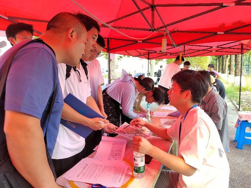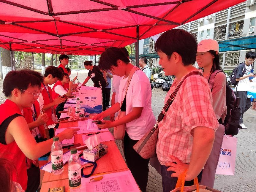 (唐臣书院)2024级学生选拔须知》及校园地图,帮助新生快速熟悉校园环境。此外,还贴心地为新生及家长准备了矿泉水,并耐心解答他们的疑问,引导购买专用耳机以备英语听力选拔考试之需。